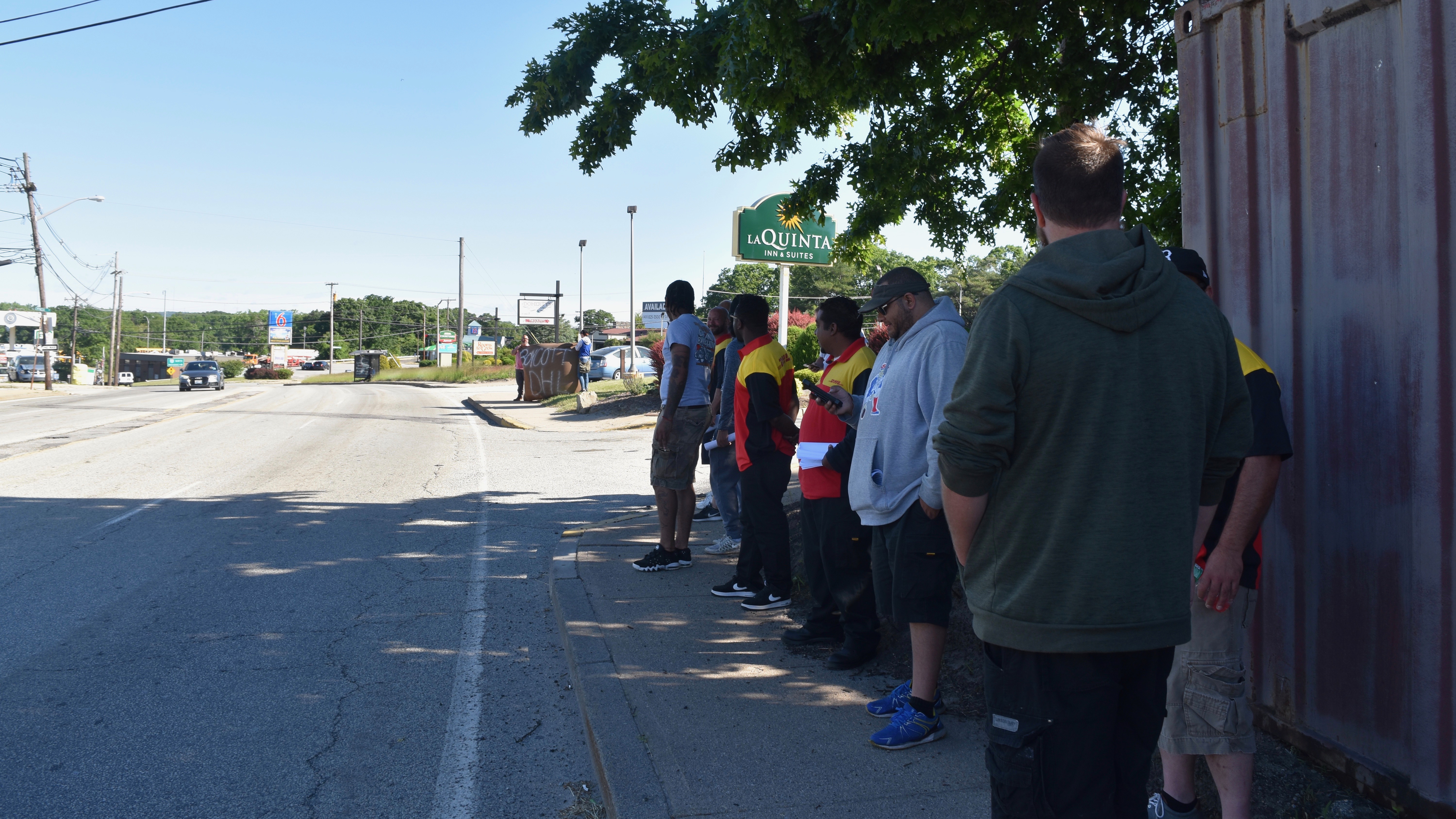 Striking DHL workers picket La Quinta Inn where their out-of-state replacements are staying